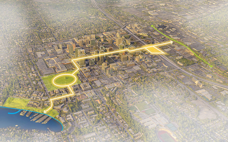 Bellevue Arts Museum members are invited to join a walking tour of the Grand Connection, Bellevue’s signature placemaking initiative that functions as a series of memorable spaces and pedestrian-focused experiences in the heart of downtown Bellevue. Inspired by the BAM Biennial 2021 Architecture and Urban Design and led by City of Bellevue planners, this walking tour will explore the 1.5-mile pathway through Bellevue’s downtown core. BAM members should be prepared to travel the full length of the tour, rain or shine.