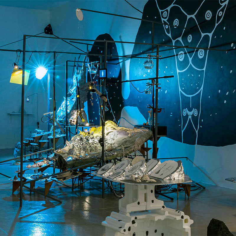 Her practice began exclusively with conceptually based figurative painting and the work morphed over time into an experimental practice that utilizes painting, drawing, video, installation, and performance. Her early work involved re-creating masterworks with an eye towards feminist re-interpretation. Deeply rooted in painting’s discourse, her current practice uses painterly logic to create three dimensional structures that evoke landscape and still life and link early and midcentury formalism, architectural theory, and utopian idealism. Recent exhibitions have considered the ethics of architecture, the relationship between social justice and climate change, sustainable energy technology, and intersectionality in Arab and Western identity.